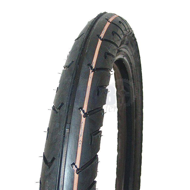 Sommige oude banden die van een oude brommer afkomen hebben nog een oude manier van maatvoering erop staan.