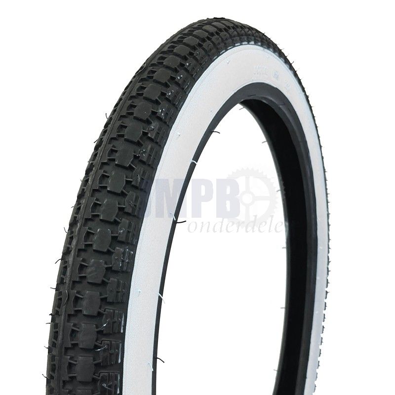 Sommige oude banden die van een oude brommer afkomen hebben nog een oude manier van maatvoering erop staan.